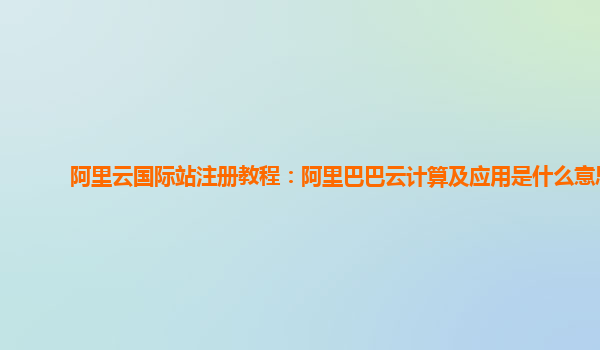 阿里云國(guó)際站注冊(cè)教程:阿里巴巴云計(jì)算及應(yīng)用
