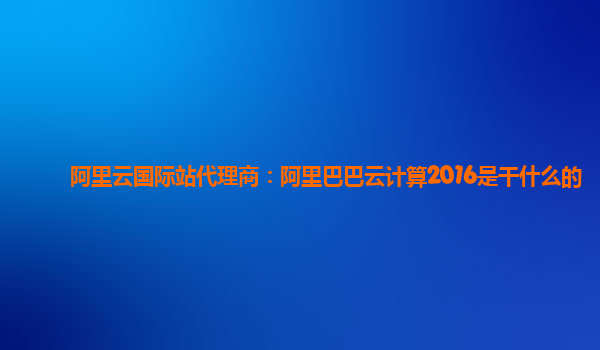 阿里云國(guó)際站代理商:阿里巴巴云計(jì)算2016是干什么的