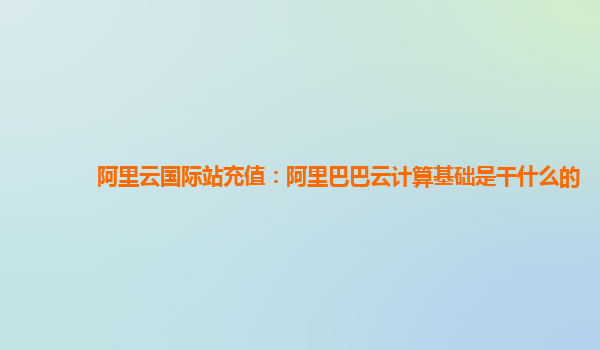 阿里云國(guó)際站充值:阿里巴巴云計(jì)算基礎(chǔ)是干什么的?