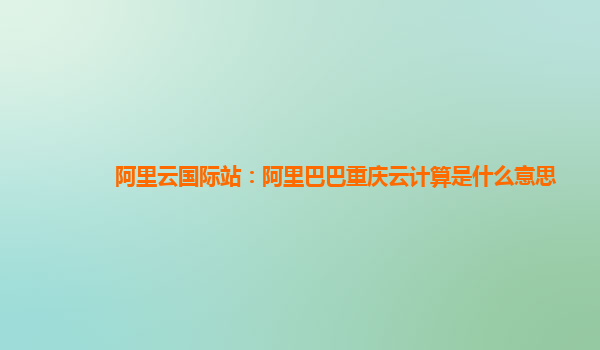 阿里云國際站:阿里巴巴重慶云計算是什么意思