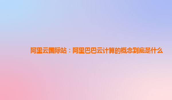 阿里云國(guó)際站:阿里巴巴云計(jì)算的概念到底是什么