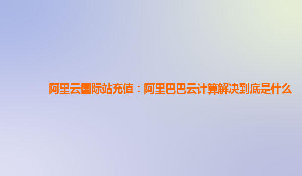 阿里云國際站充值:阿里巴巴云計算解決到底是什么