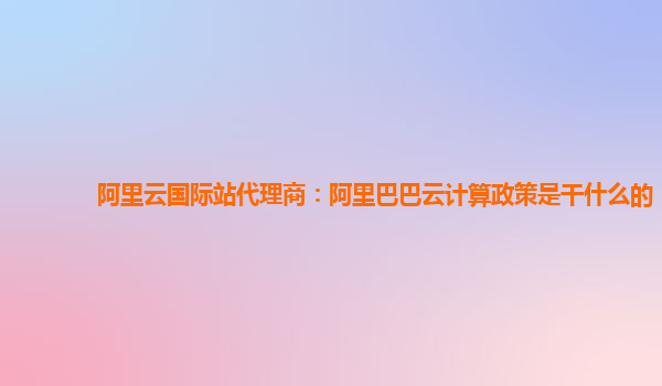 阿里云國際站代理商:阿里巴巴云計(jì)算政策解析