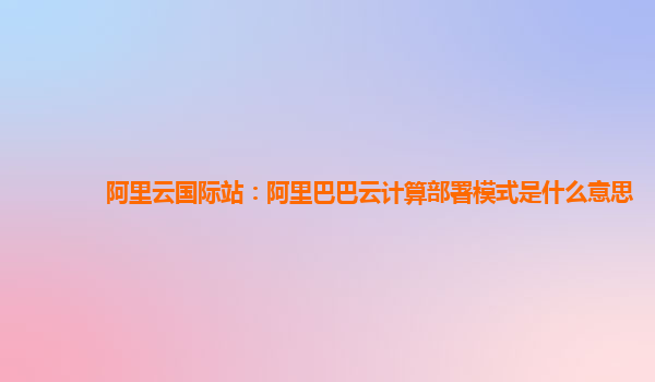 阿里云國(guó)際站:阿里巴巴云計(jì)算部署模式解析