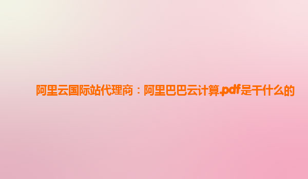 阿里云國際站代理商:阿里巴巴云計(jì)算.pdf是干什么的