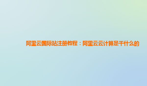 阿里云國際站注冊教程:阿里云云計(jì)算是干什么的