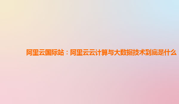 阿里云云計算與大數(shù)據(jù)技術(shù)到底是什么?