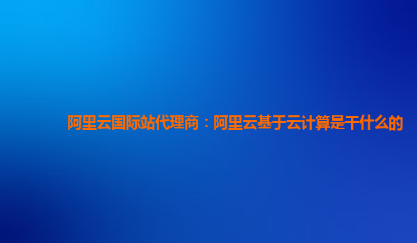 阿里云國(guó)際站代理商:阿里云基于云計(jì)算是干什么的