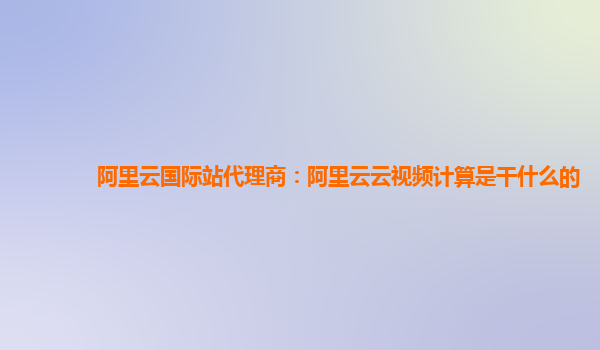 阿里云國(guó)際站代理商:阿里云云視頻計(jì)算是干什么的