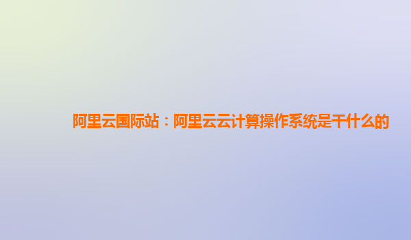 阿里云國際站:阿里云云計算操作系統(tǒng)是干什么的?