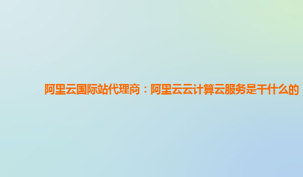 阿里云國(guó)際站代理商:阿里云云計(jì)算云服務(wù)是干什么的