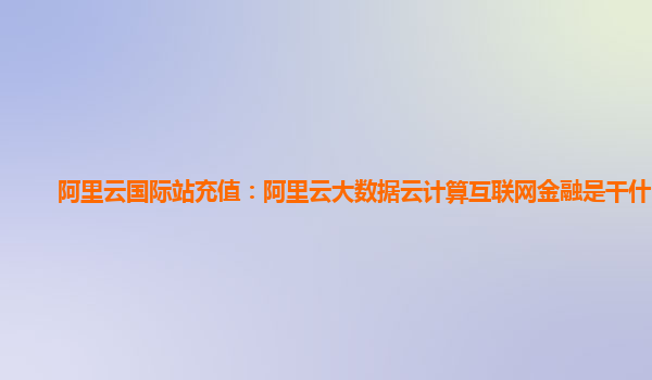 阿里云國(guó)際站充值:阿里云大數(shù)據(jù)云計(jì)算互聯(lián)網(wǎng)金融是干什么的