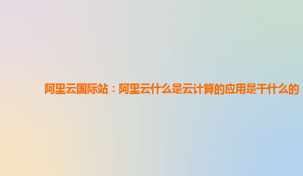 阿里云國際站:阿里云什么是云計(jì)算的應(yīng)用是干什么的