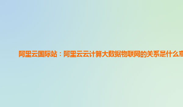 阿里云國際站:阿里云云計算、大數(shù)據(jù)與物聯(lián)網(wǎng)的關(guān)系解析