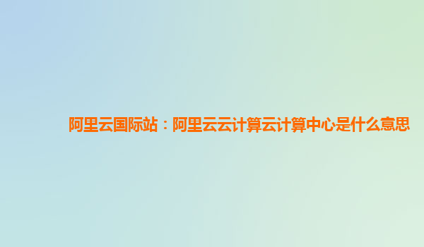 阿里云國際站:阿里云云計算云計算中心是什么意思