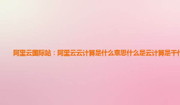阿里云國際站:阿里云云計算是什么意思,云計算是干什么的?