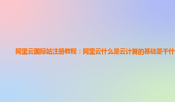 阿里云國際站注冊教程:阿里云是什么,云計算基礎及其優(yōu)勢
