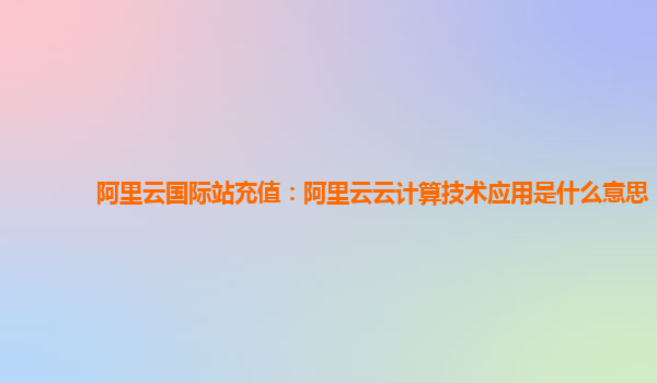 阿里云國際站充值:阿里云云計算技術(shù)應用解析