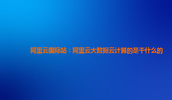 阿里云國(guó)際站:阿里云大數(shù)據(jù)云計(jì)算的是干什么的