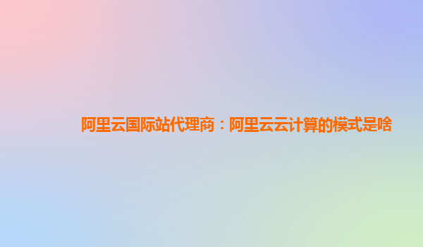 阿里云國際站代理商:阿里云云計算的模式是啥