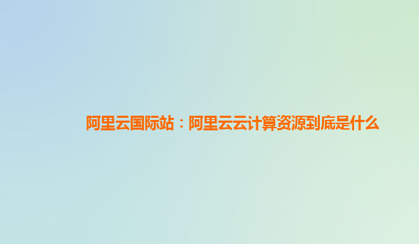 阿里云國際站:阿里云云計算資源到底是什么