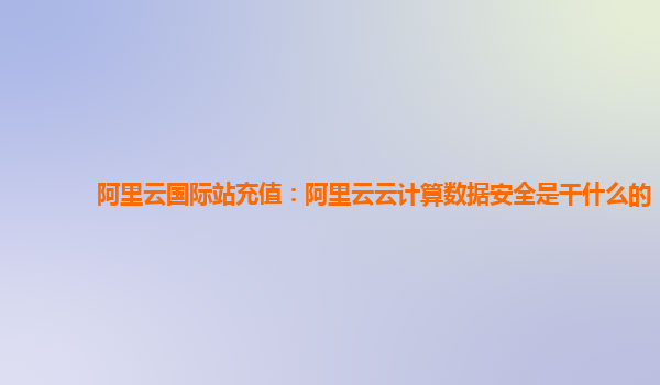 阿里云國(guó)際站充值:阿里云云計(jì)算數(shù)據(jù)安全是干什么的