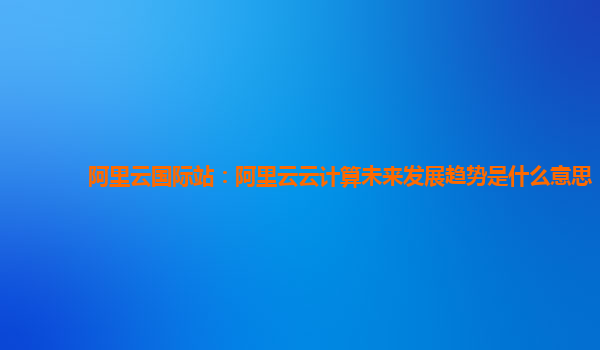 阿里云國(guó)際站:阿里云云計(jì)算未來(lái)發(fā)展趨勢(shì)