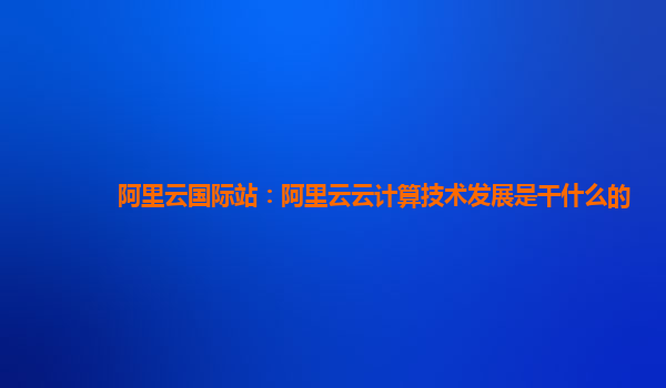 阿里云國際站:阿里云云計(jì)算技術(shù)發(fā)展及優(yōu)勢