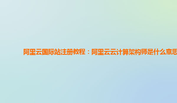 阿里云國(guó)際站注冊(cè)教程:阿里云云計(jì)算架構(gòu)師的意義與優(yōu)勢(shì)