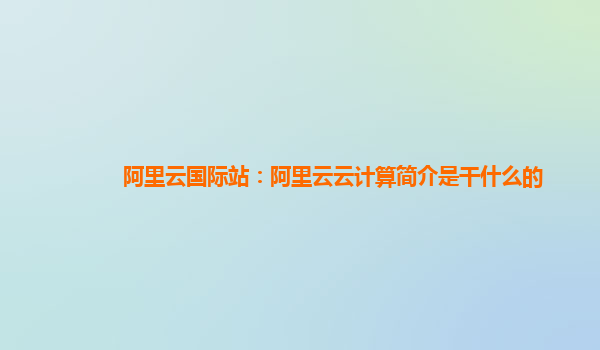 阿里云云計(jì)算簡(jiǎn)介:讓企業(yè)走在技術(shù)前沿