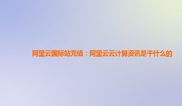 阿里云國(guó)際站充值:阿里云云計(jì)算資訊是干什么的