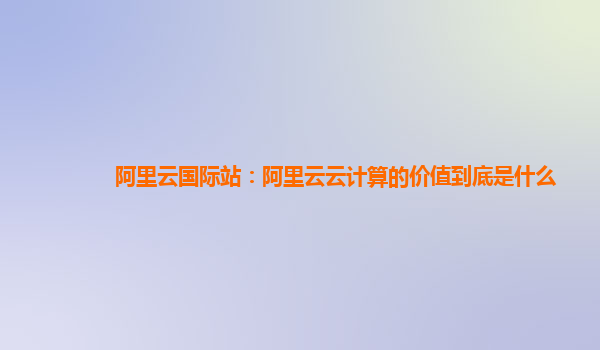 阿里云國際站:阿里云云計算的價值到底是什么