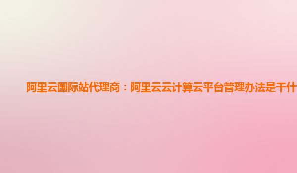阿里云國際站代理商:阿里云云計算云平臺管理辦法是干什么的