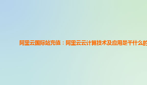 阿里云國(guó)際站充值:阿里云云計(jì)算技術(shù)及應(yīng)用