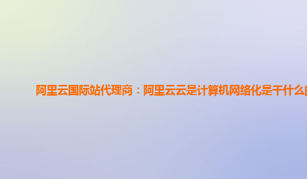 阿里云國際站代理商:阿里云云計(jì)算是干什么的