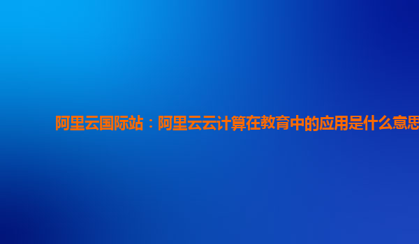 阿里云國際站:阿里云云計(jì)算在教育中的應(yīng)用