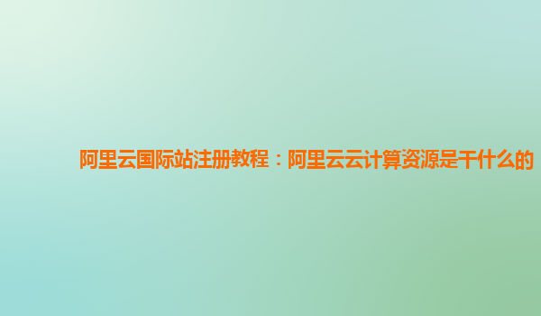阿里云國際站注冊教程:阿里云云計(jì)算資源是干什么的