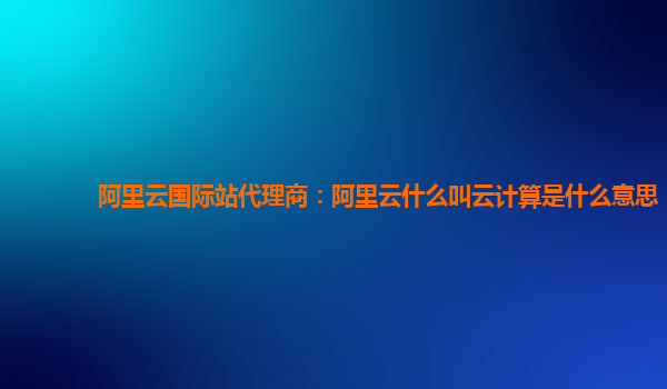 阿里云國(guó)際站代理商:阿里云什么是云計(jì)算?