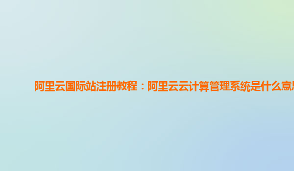 阿里云國際站注冊教程:阿里云云計(jì)算管理系統(tǒng)是什么意思