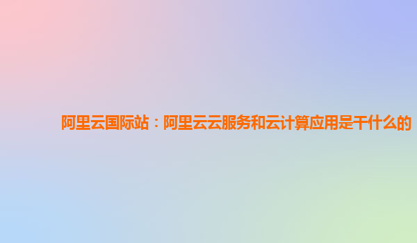 阿里云國際站:阿里云云服務(wù)和云計算應(yīng)用是干什么的