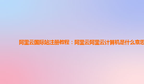 阿里云國際站注冊教程:理解阿里云與其優(yōu)勢
