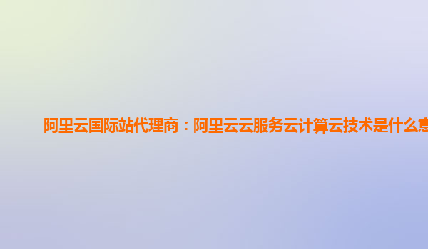 阿里云國際站代理商:阿里云云服務(wù)云計(jì)算云技術(shù)是什么意思