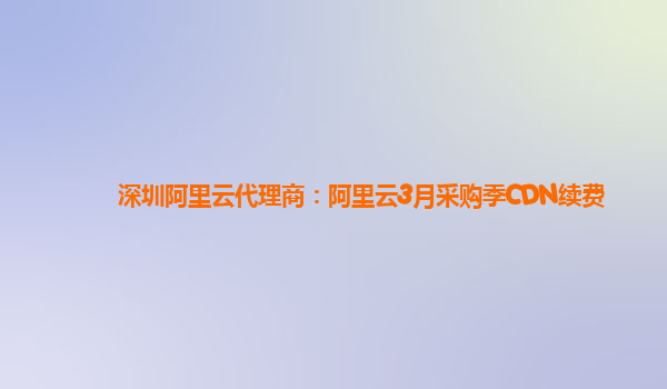 深圳阿里云代理商:阿里云3月采購季CDN續(xù)費優(yōu)勢
