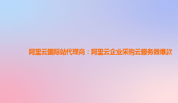 阿里云國際站代理商:阿里云企業(yè)采購云服務(wù)器爆款