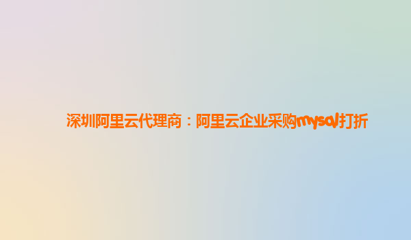深圳阿里云代理商:阿里云企業(yè)采購MySQL打折優(yōu)惠