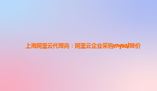 上海阿里云代理商:阿里云企業(yè)采購MySQL降價