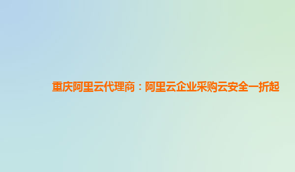 重慶阿里云代理商:阿里云企業(yè)采購云安全一折起