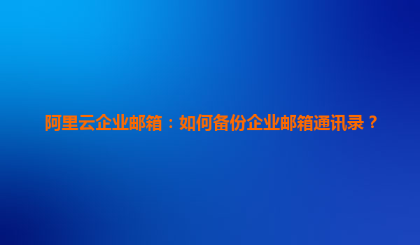 阿里云企業(yè)郵箱作為一種高效的商務(wù)通信工具,不僅提供穩(wěn)定的郵件服務(wù),還支持豐富的管理功能,其中包括通訊錄的管理和備份。本文將詳細(xì)介紹如何備份阿里云企業(yè)郵箱通訊錄,并分析其在企業(yè)運(yùn)營(yíng)中的重要性。