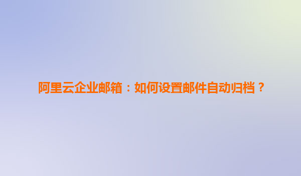 阿里云企業(yè)郵箱:如何設(shè)置郵件自動(dòng)歸檔