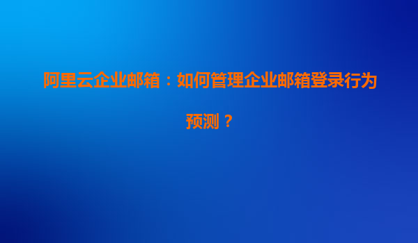 阿里云企業(yè)郵箱:如何管理企業(yè)郵箱登錄行為預(yù)測(cè)?